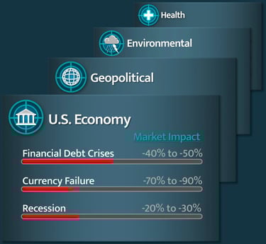 The BSE Tracker monitors the U.S. Economy, Geopolitical, Environmental and Health related events. BSE tracks the progression of events and forecasts the total stock market impact if the event were to occur.